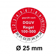 Runde Plaketten mit 25mm Durchmesser. DGUV Regel 100-500
